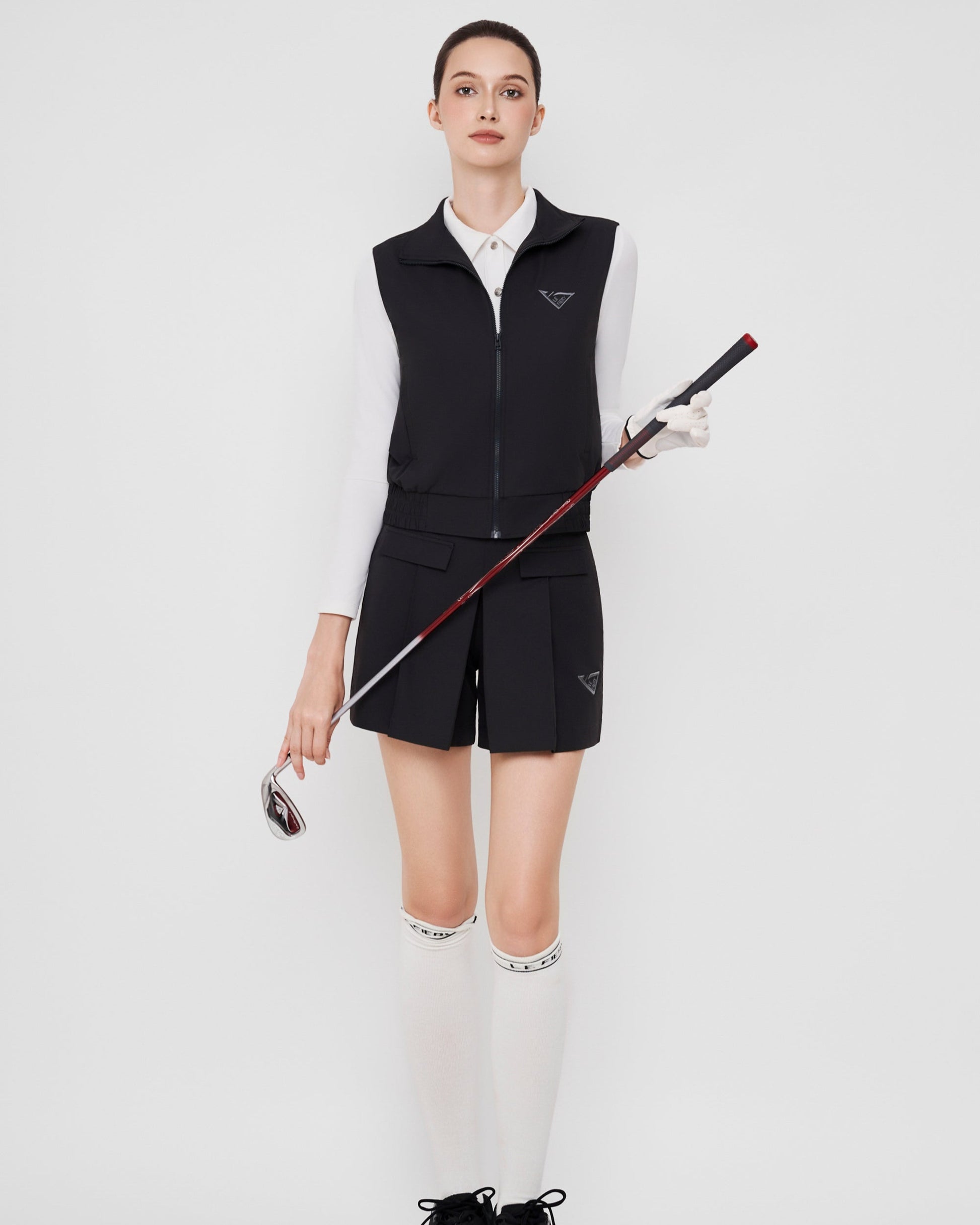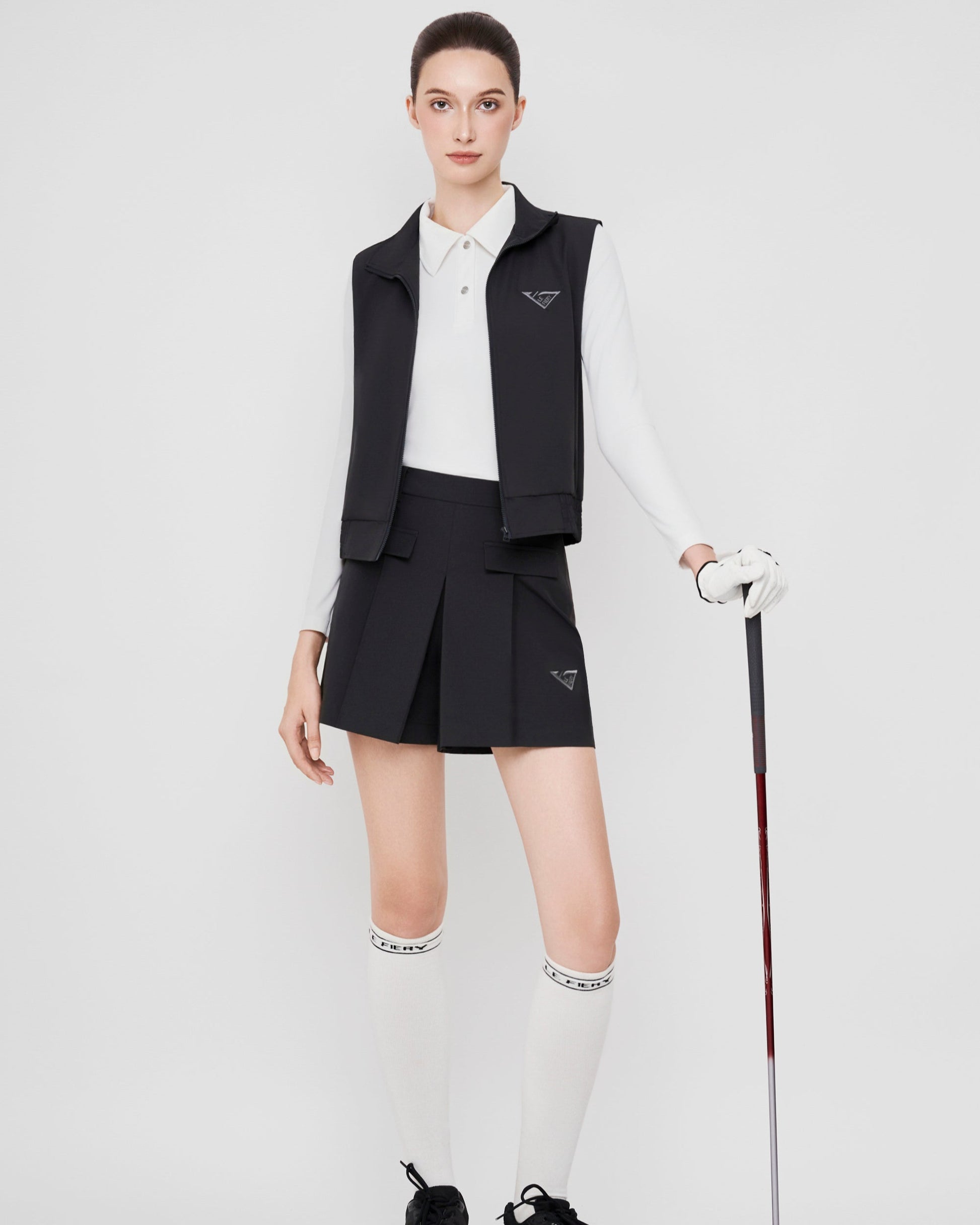 Lightweight sleeveless vest with a full front zipper, clean-cut design, and elastic hem for a sporty fit. Perfect as an outer layer for golf, outdoor activities, or stylish athleisure looks. Embroidered LE FIERY logo detail adds a premium touch.