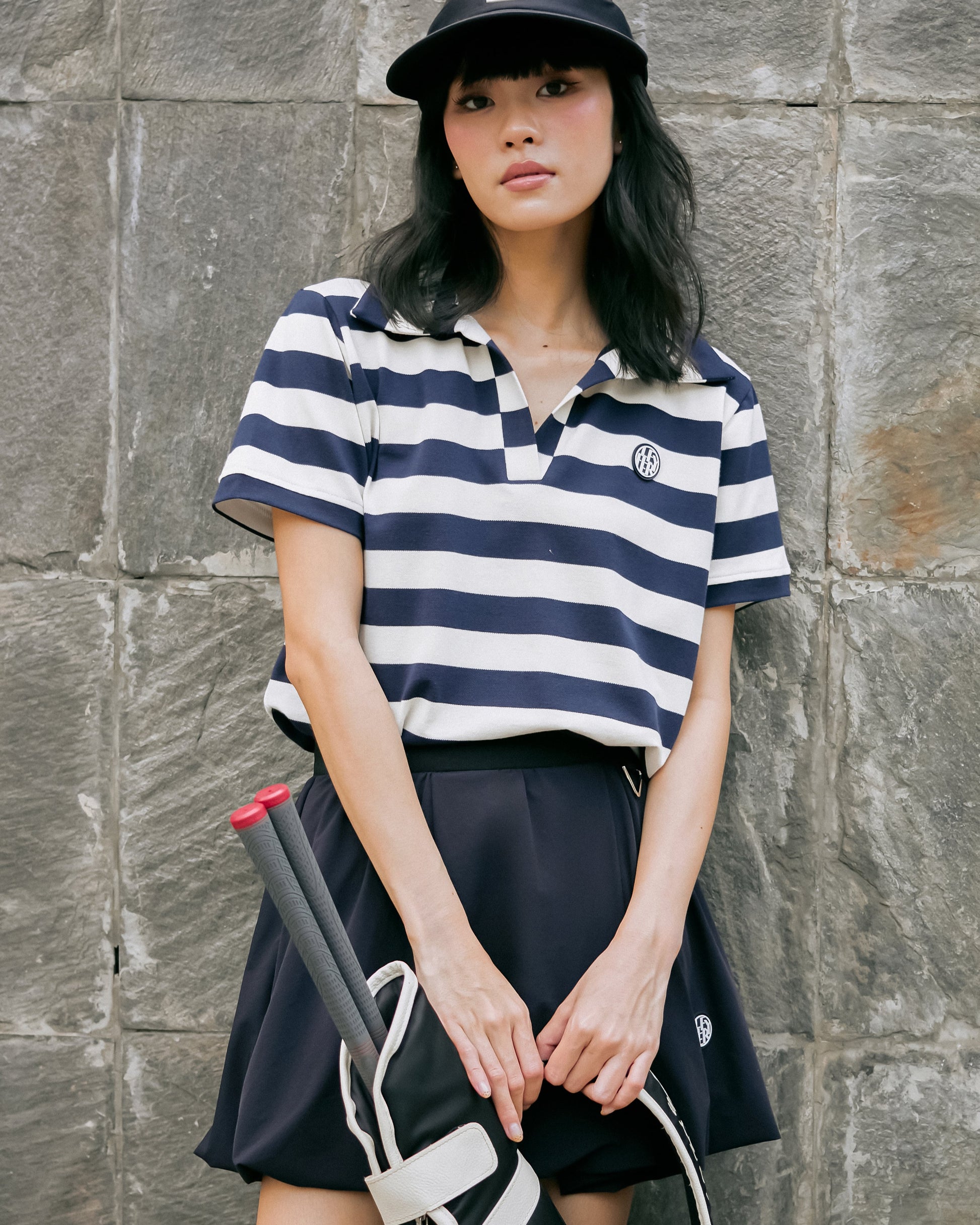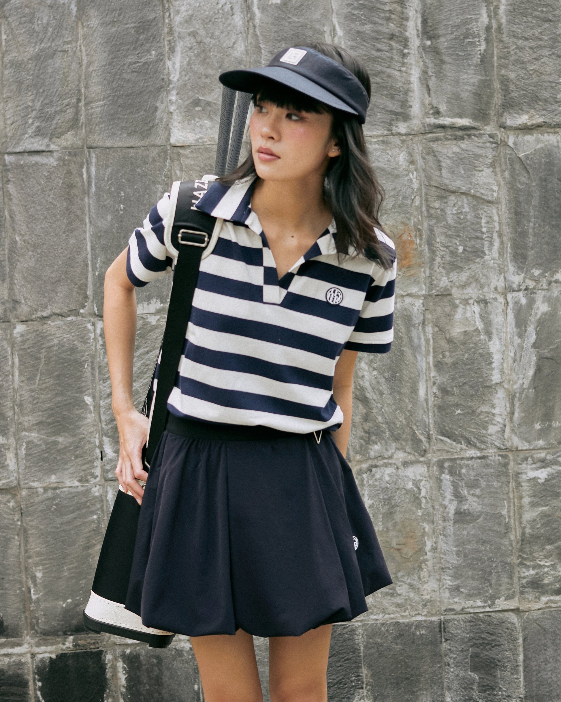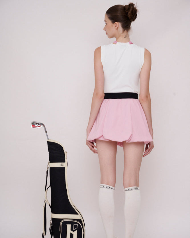 Chic sports skirt with a unique bubble hem design, elastic waistband for comfort, and a lightweight structure ideal for tennis, golf, or casual athletic wear. Accented with a mini metal detail and embroidered logo for a fashionable touch.