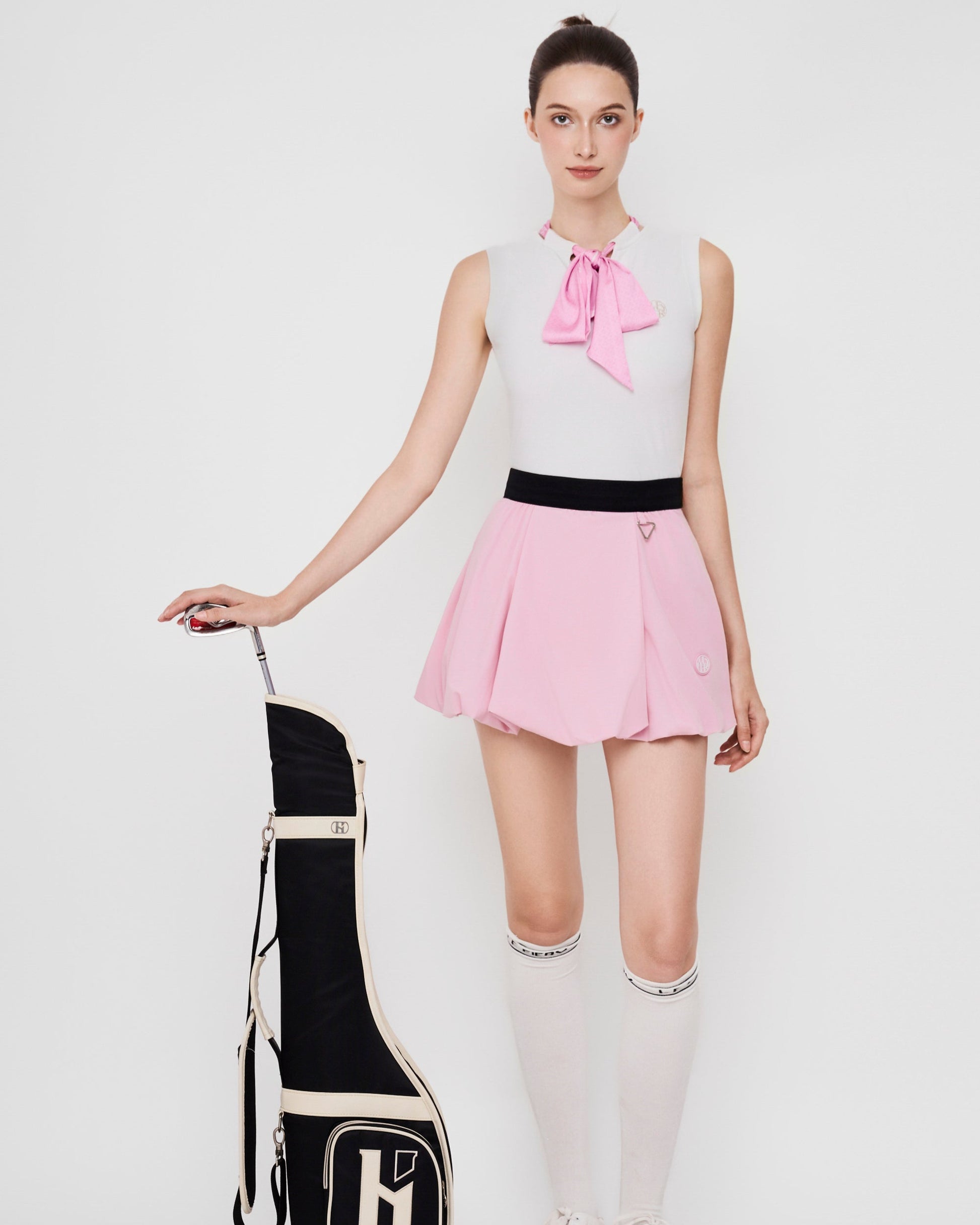 Chic sports skirt with a unique bubble hem design, elastic waistband for comfort, and a lightweight structure ideal for tennis, golf, or casual athletic wear. Accented with a mini metal detail and embroidered logo for a fashionable touch.