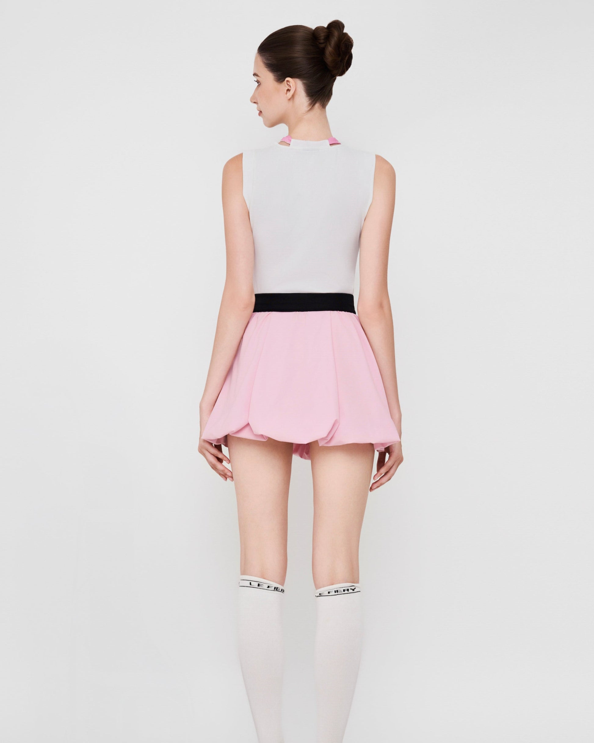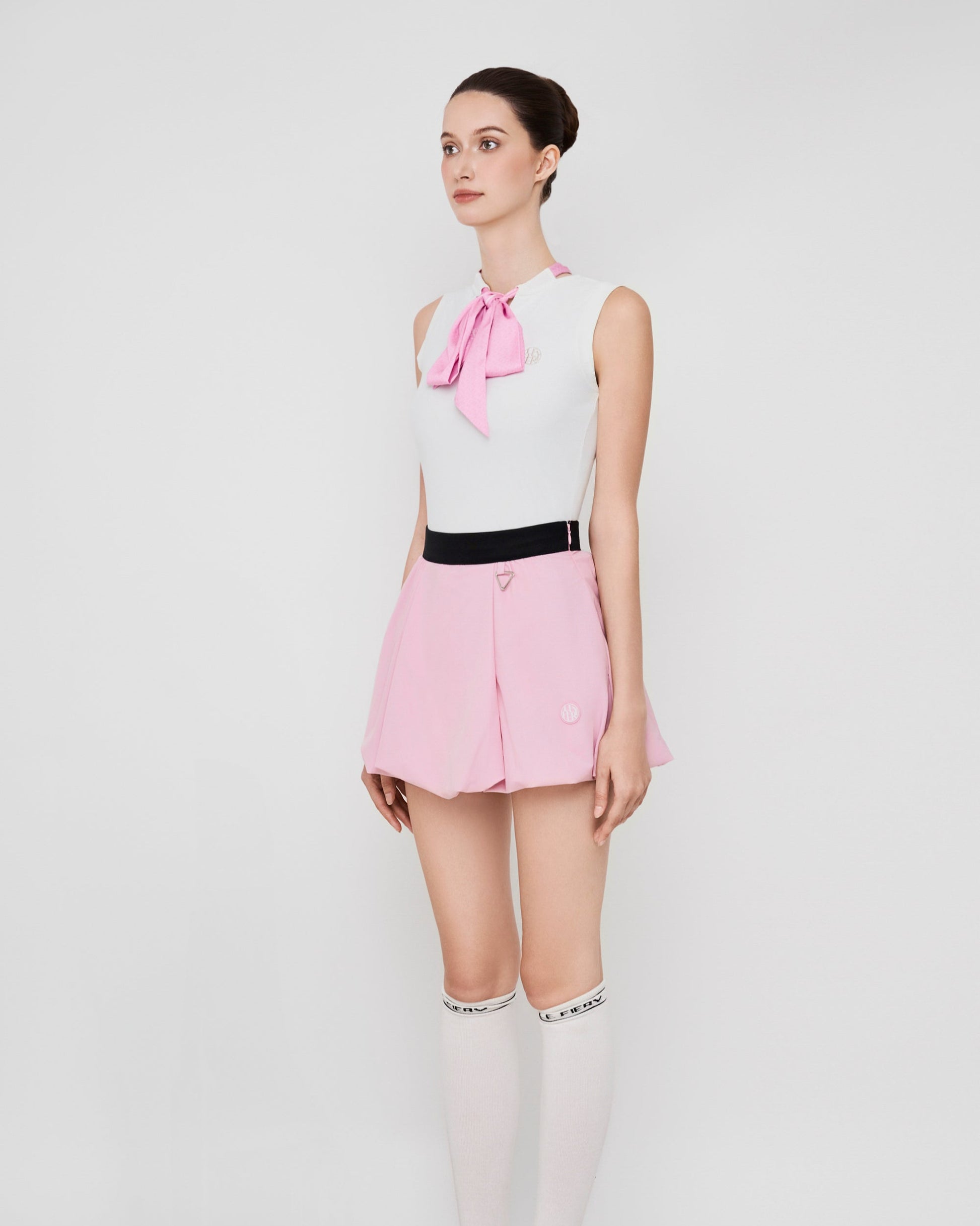 Designed with a flared pleated structure for a youthful, energetic look. The structured material holds its shape beautifully, while the subtle embroidered logo adds a refined brand touch. Easily pairs with various tops for both athletic and casual occasions.