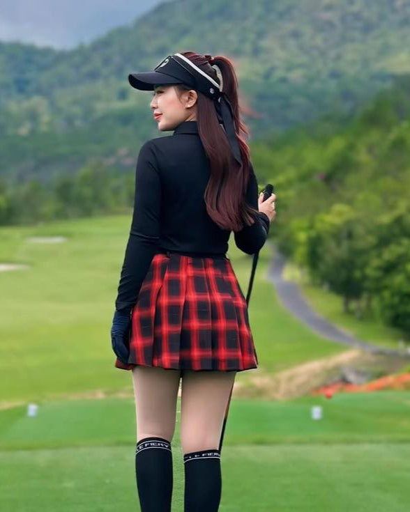 Women's Black & Tartan Golf Outfit – Modern Preppy Performance Set