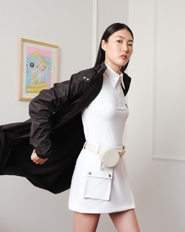 Made from water-resistant materials, this coat helps you shine away through the summer rain. The coat can be worn on almost any occasion. The adjustable hem strings on your waist and wrists enable an easy 2-way transformation from loose to huggy fit. Wear yours while going to the driving range on a rainy day.