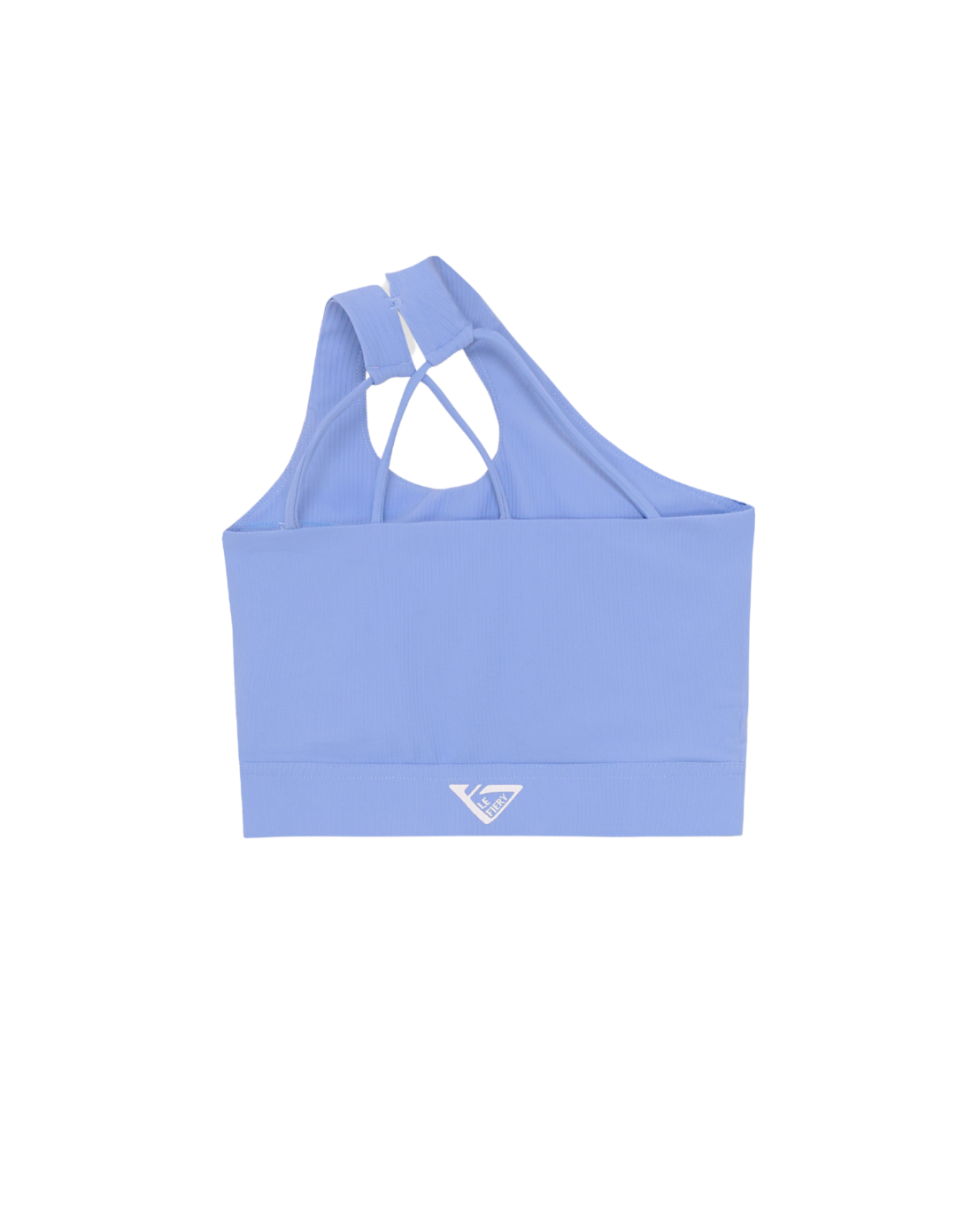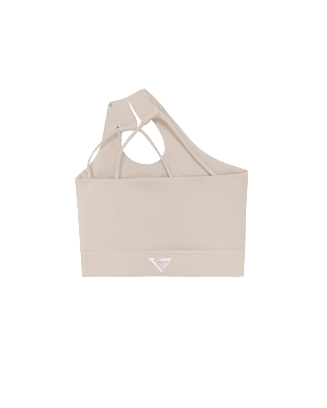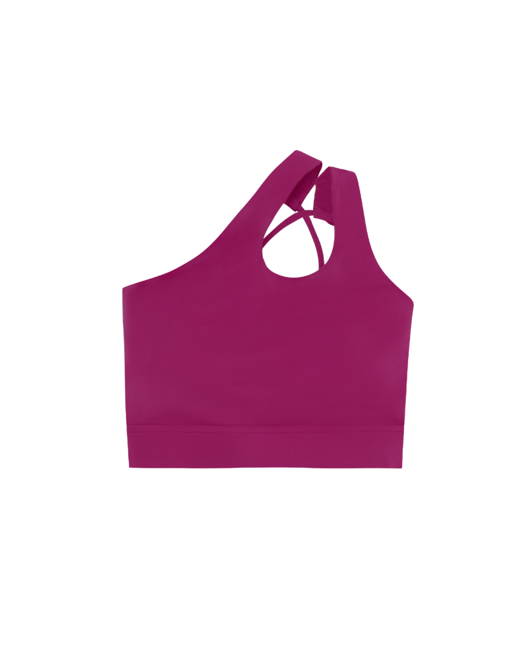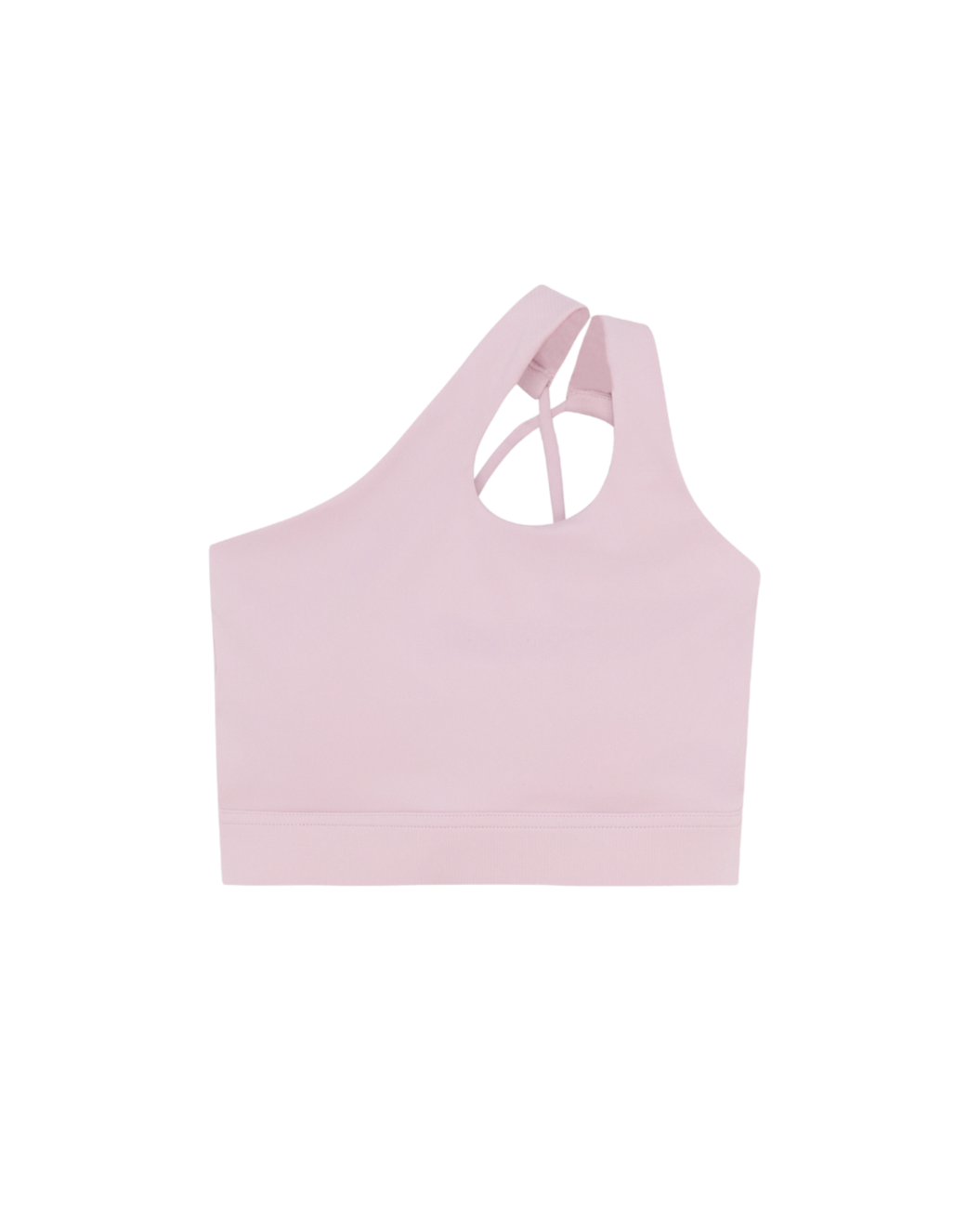 Stylish and supportive sports bra featuring a unique one-shoulder design with cross-back detailing. Provides medium support with a smooth, stretchy fit ideal for yoga, pilates, or light training sessions.